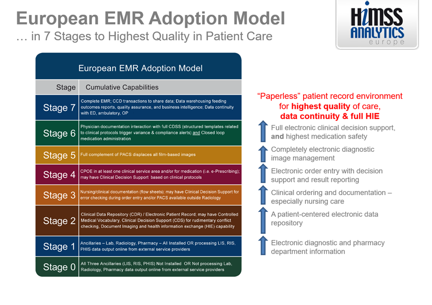 Voor het meten van de mate van digitalisering van 72 Nederlandse ziekenhuizen is gebruik gemaakt van het EMR Adoption Model van HIMSS.